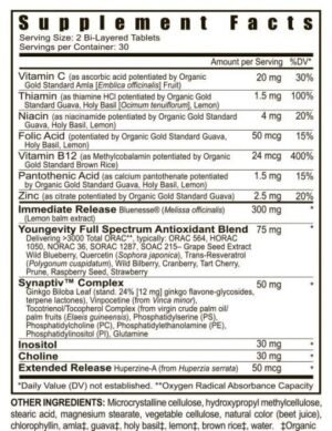 Combines an exclusive selection of vitamins and nutrients—including Youngevity’s full spectrum antioxidant blend—scientifically proven to support and protect the brain.